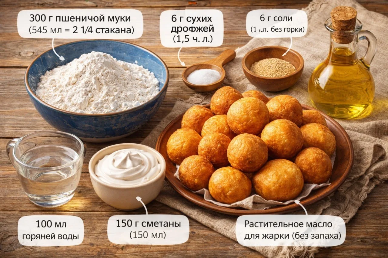 Если у вас нет кулинарного термометра, проверить температуру можно опытным путем: опустите в масло небольшой кусочек теста. Вокруг него должно начаться кипение в виде множества мелких пузырьков. Если кипение бурное, с большими пузырями, значит, масло слишком горячее и колобок быстро сгорит, не успев пропечься. Если кипение недостаточно активное (отдельные пузырьки), тесто будет не жариться, а скорее вариться и пропитается маслом сверх меры.