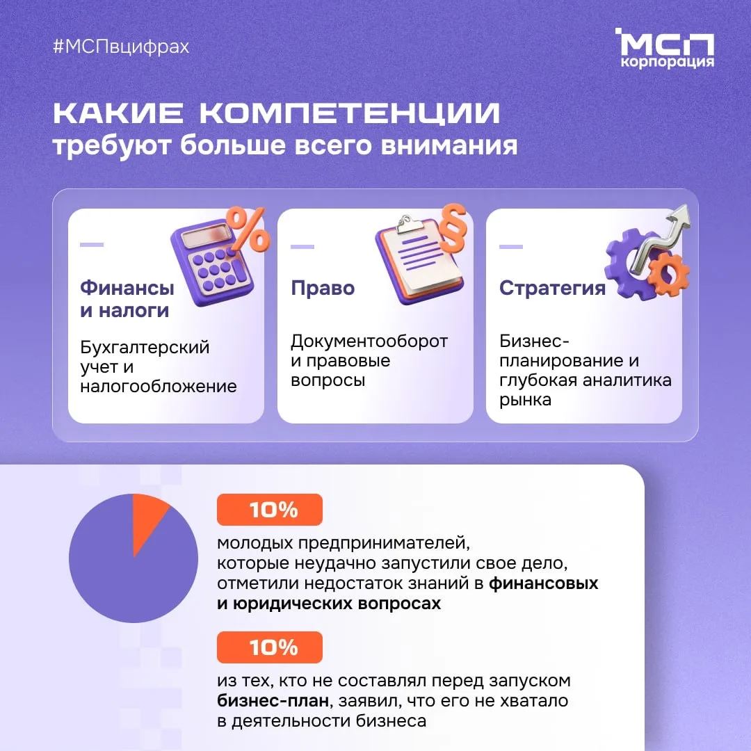 Исследование Корпорации МСП, АСИ, МСП Банка и Frank RG показало, что более 40% молодых предпринимателей отмечают нехватку знаний и опыта для успешного ведения бизнеса.