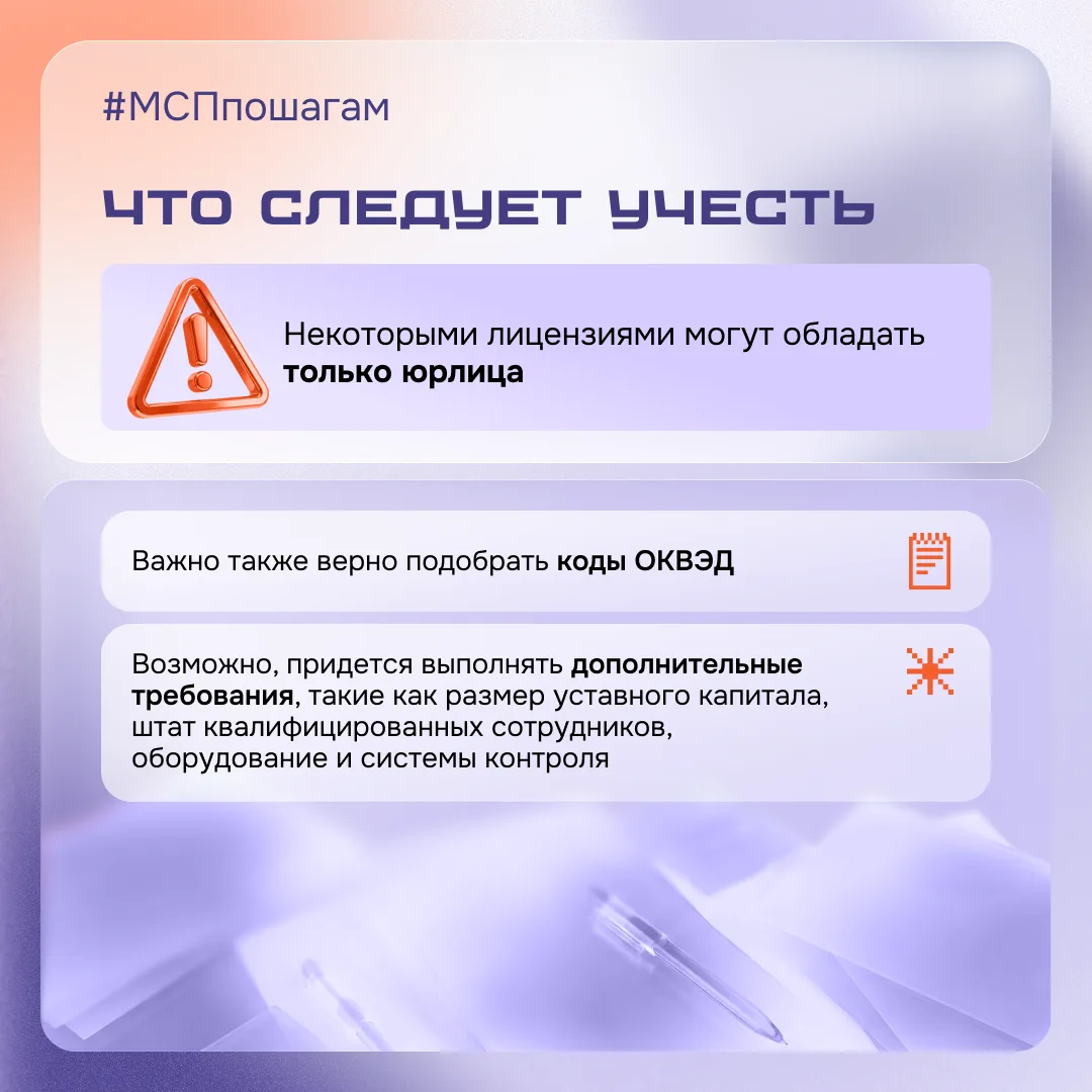 📢 В некоторых сферах для открытия бизнеса недостаточно только зарегистрировать компанию или ИП — нужно получить лицензию.