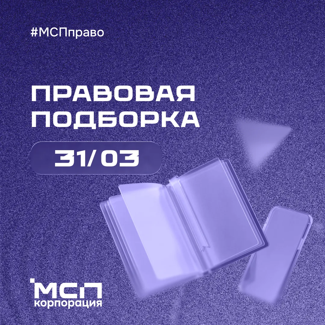 👋 Вторник — правовая подборка Корпорации МСП на связи! Подготовили обзор ключевых изменений законодательства для бизнеса за неделю.