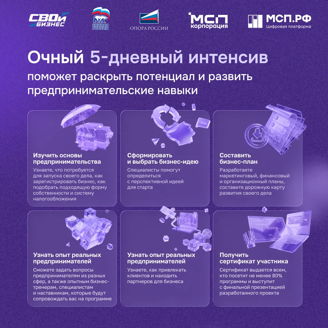 📎 «СВОй бизнес» — это интенсивная программа, которая помогает разобраться в основах предпринимательства, сформировать собственную бизнес-идею и составить пошаговый план её реализации.