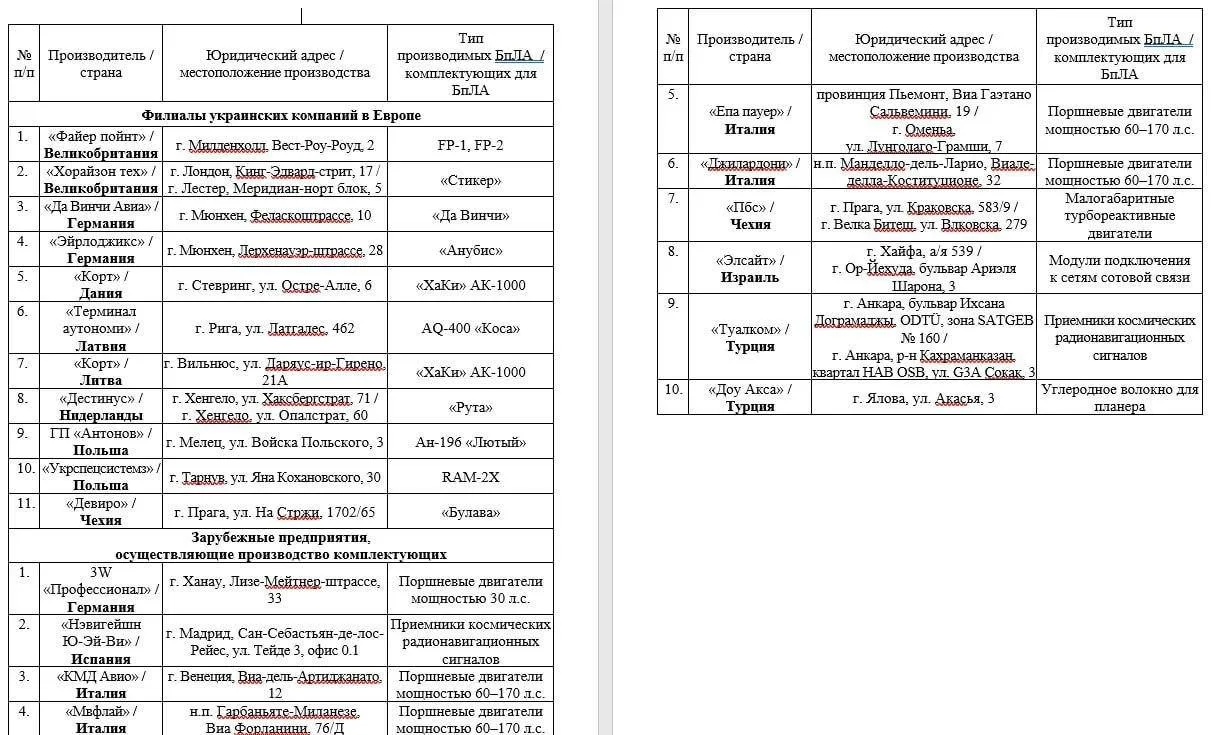 · Филиалы украинских компаний, производящих дроны для ударов по РФ, расположены в восьми странах Европы;