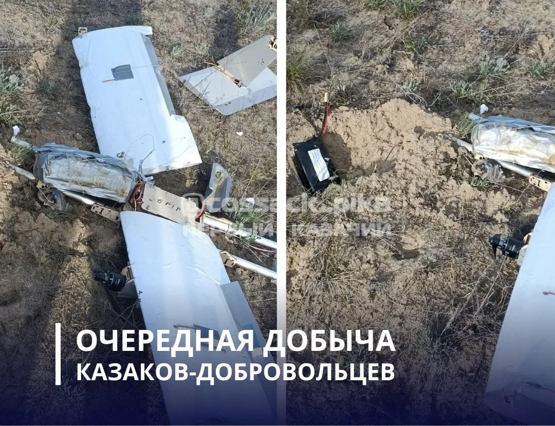 Вражеский БПЛА «Мрия» летел бомбить мирный поселок, но был вовремя обнаружен воинами отряда Егорлык казачьей бригады «Дон» Добровольческого корпуса. Сосредоточенным огнем автомата казаки «посадили» дрон.