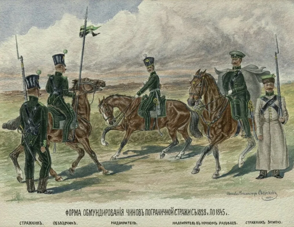 Военный министр Барклай-де-Толли обследовал западный участок русской границы и обратился к императору Александру I с предложениями создать от реки Егорлык до н.п. Паланген в Курляндской губернии систему казачьих разъездов с штаб-офицерами из войск. Казачья пограничная стража получила боевое крещение в Отечественной войне 1812 года, первой встретив французов у переправы через р. Неман. Разъезд отвлек противника перестрелкой, отправил нарочного с донесением и сжег мост.