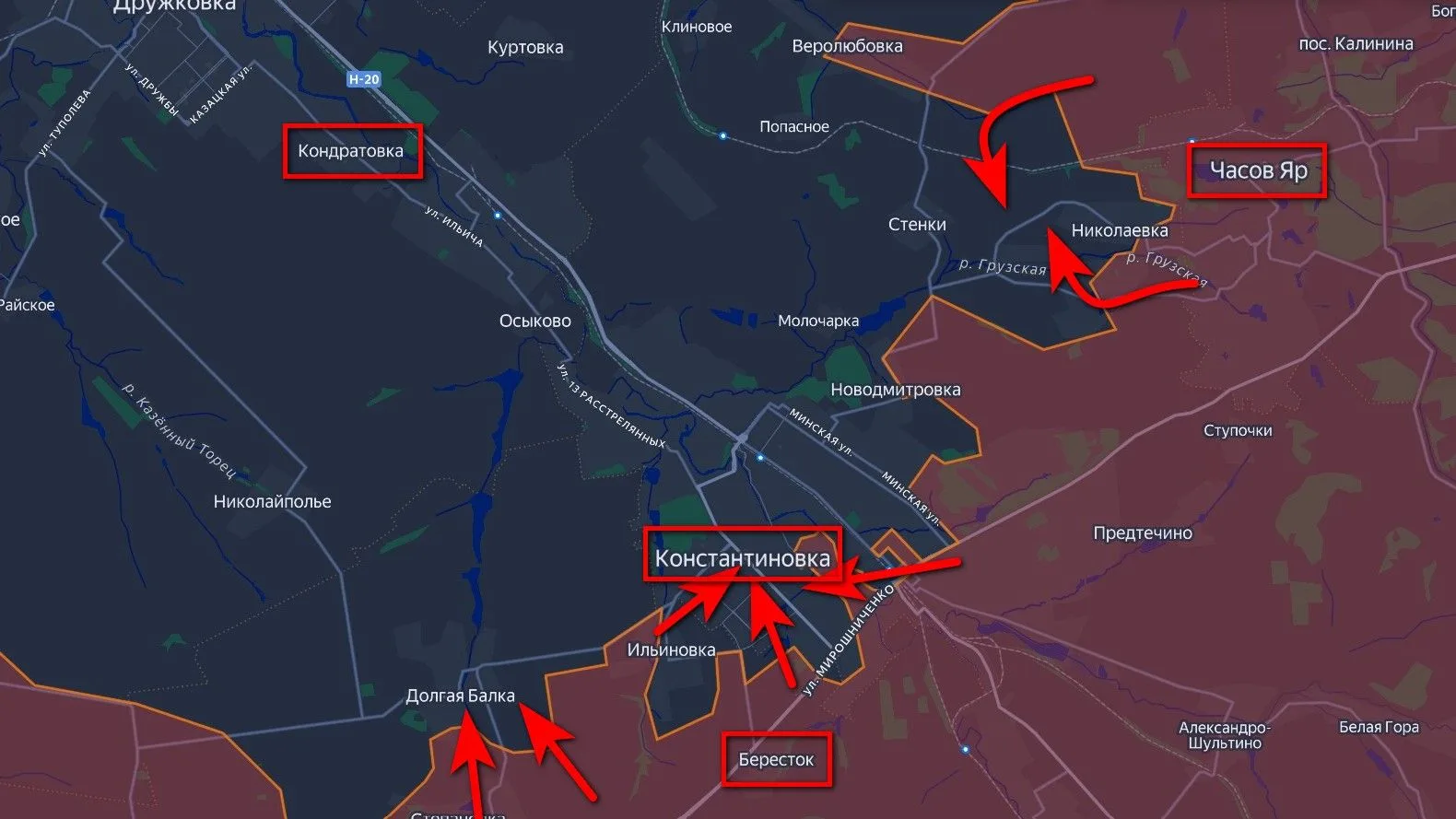 ⚫️ВС РФ установили огневой контроль над ключевой трассой снабжения ВСУ в Константиновке, фактически взяв город в оперативное окружение. После того как армия России перерезала эту дорогу, ВСУ оказались в «огневом мешке», а их возможности по переброске резервов и боеприпасов в ДНР серьёзно ограничены.