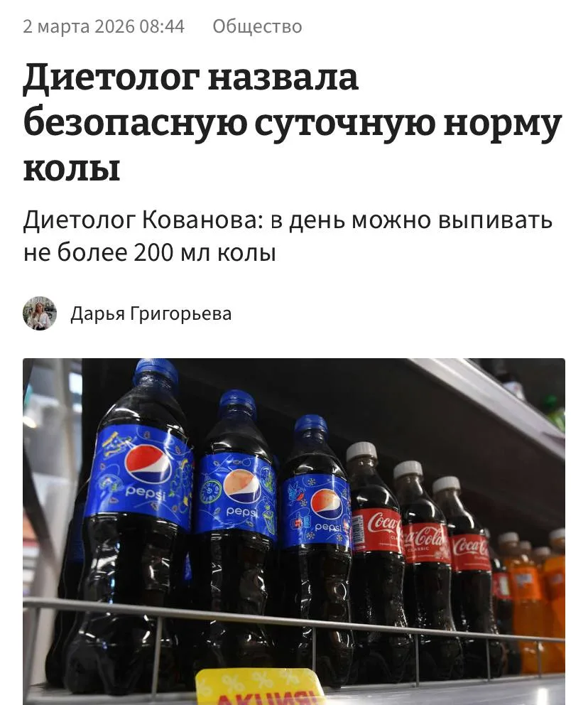 😲В день можно выпивать не более 200 мл колы — заявляют врачи.