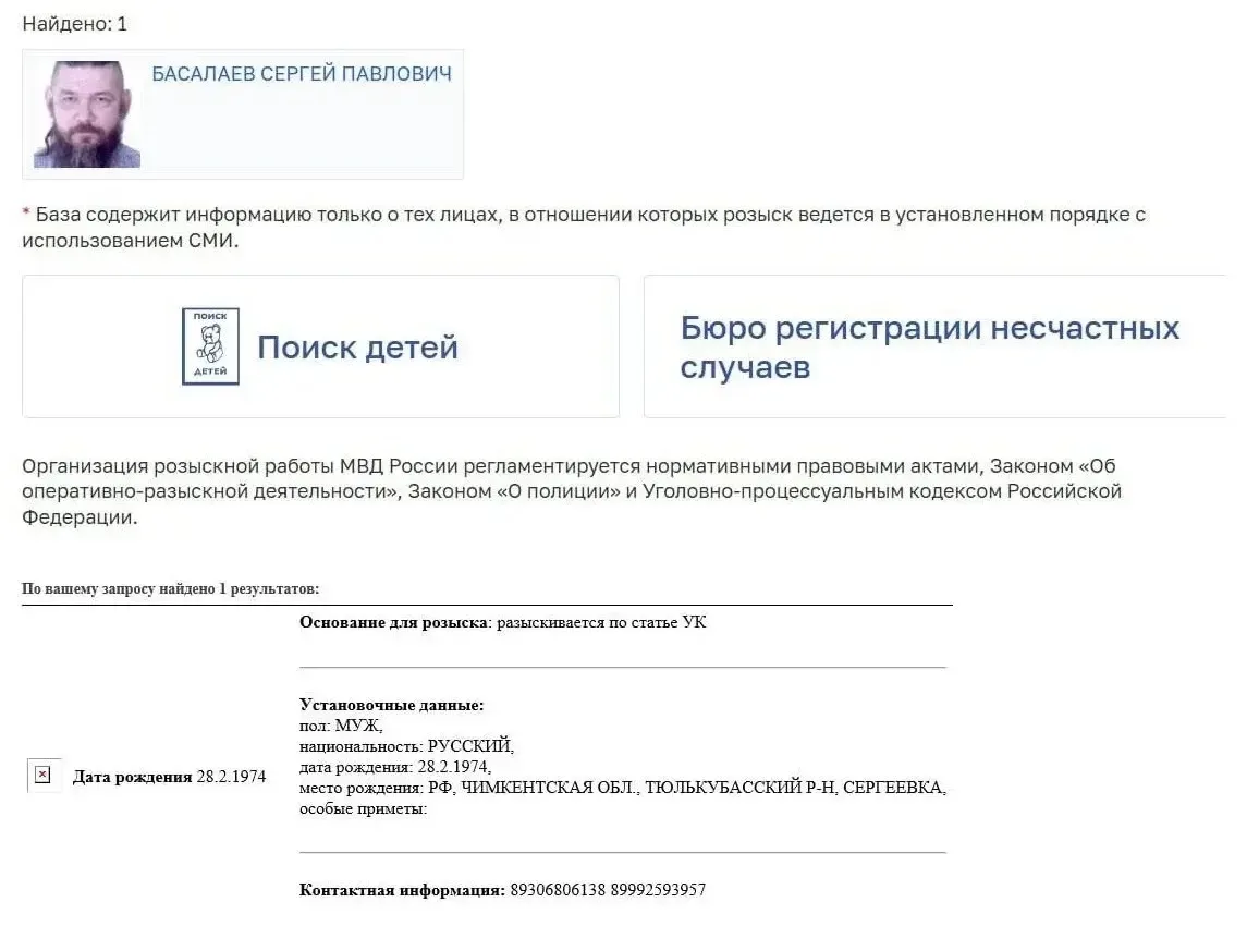 Пишут что преступник Сергей Басалаев