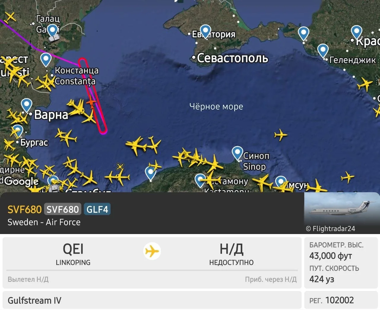 ⚡️В первые на этой неделе в акватории Чёрного моря замечены НАТОвские разведчики, самолёт и дрон