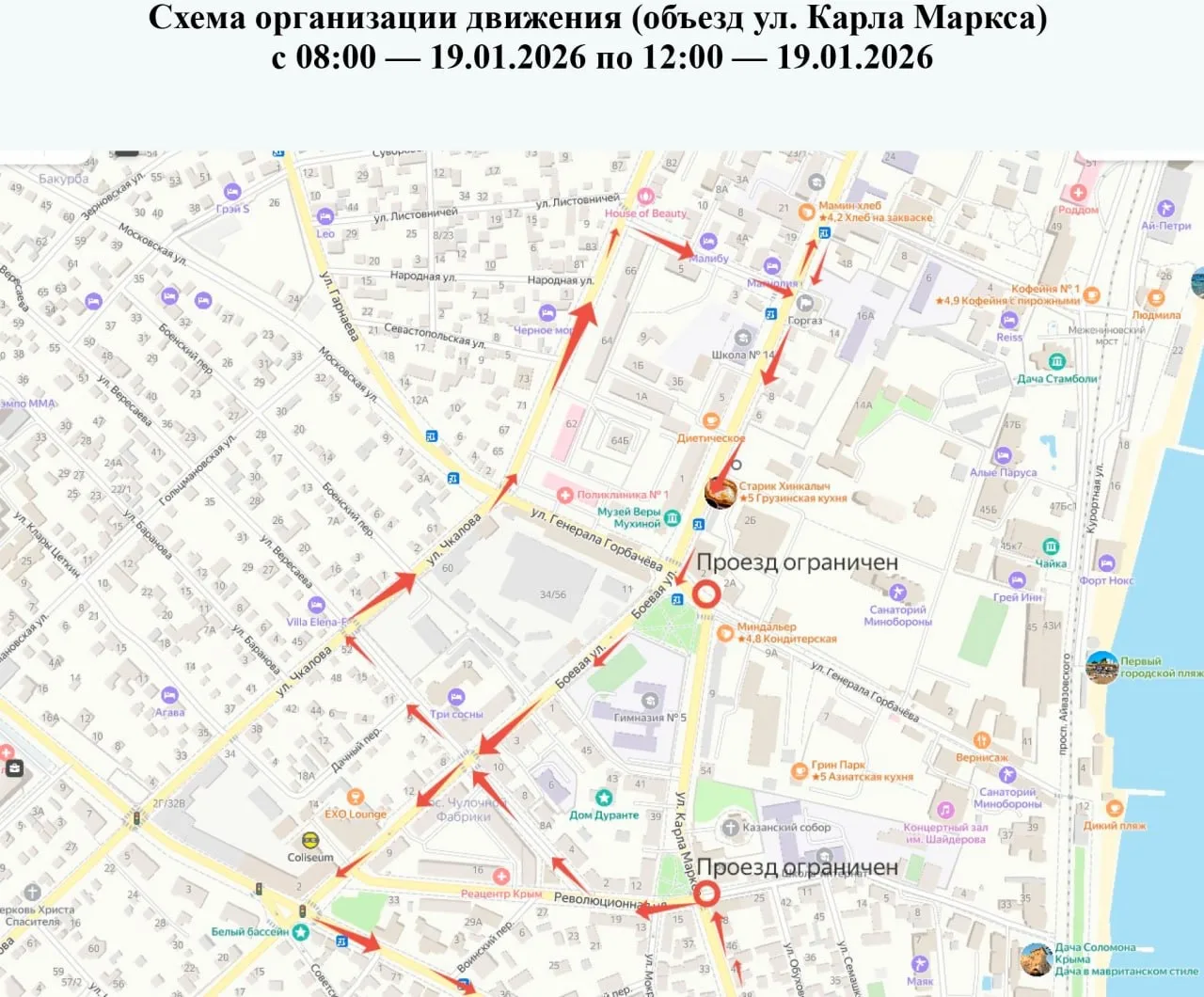 🚙 Объезд возможен через улицы Революционная, Вересаева, Боевая.
