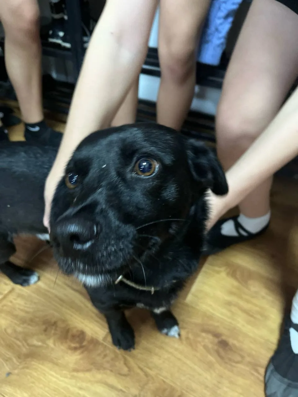 нашли собаку,шла с байбуги за нами,карие глаза,черная шерсть,и темно-зеленый ошейник,есть на лапках белые пятнышки,видно что домашняя,знает некоторые команды,гуляет возле 13 школы😭