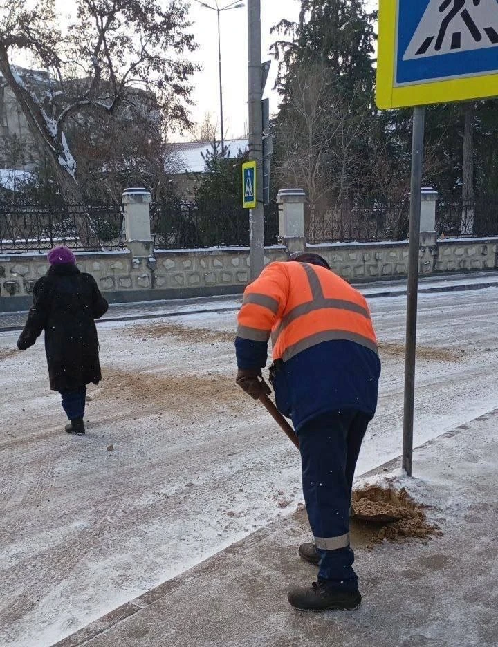 Дворники МБУ «Феодосийская служба благоустройства» и подрядных организаций к уборке тротуаров от снега приступили еще вчера вечером.