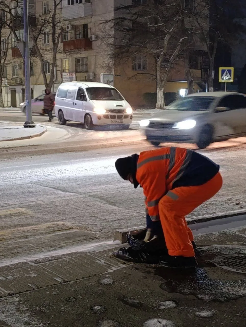 Феодосию продолжает засыпать снегом, дороги скользкие! Будьте аккуратней!