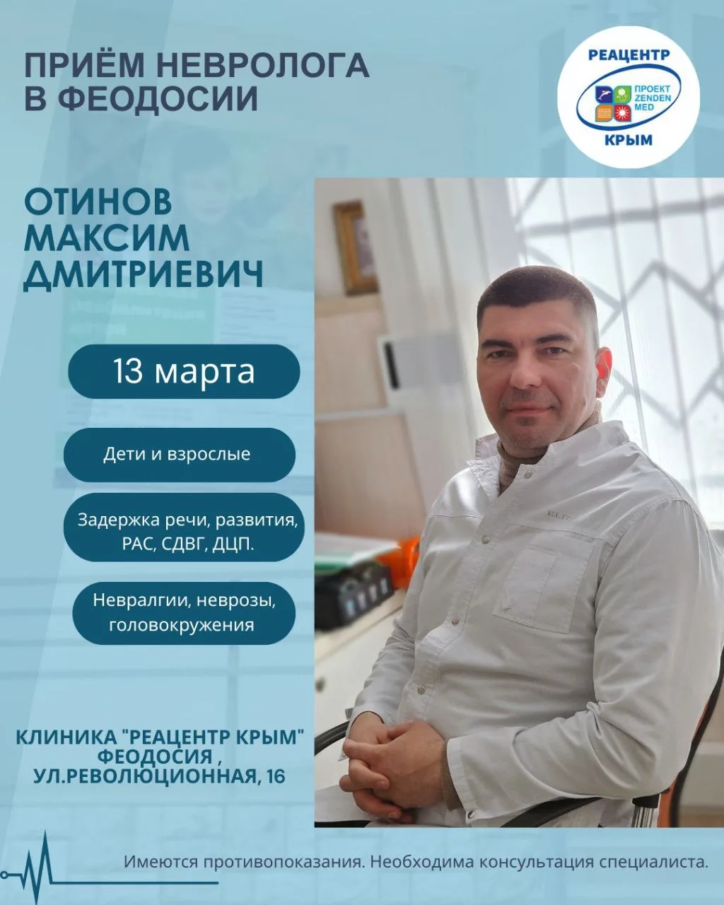 Приглашаем на приём к главному неврологу сети клиник "Реацентр Крым" Максиму Дмитриевичу Отинову.