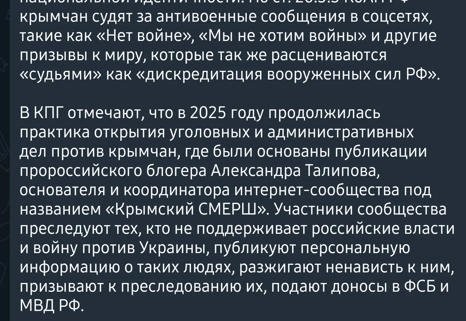 При этом он отметил, что на фоне этой новости многие украинские каналы снова начинают писать фейки о некоем "преследовании" определенных лиц на полуострове.