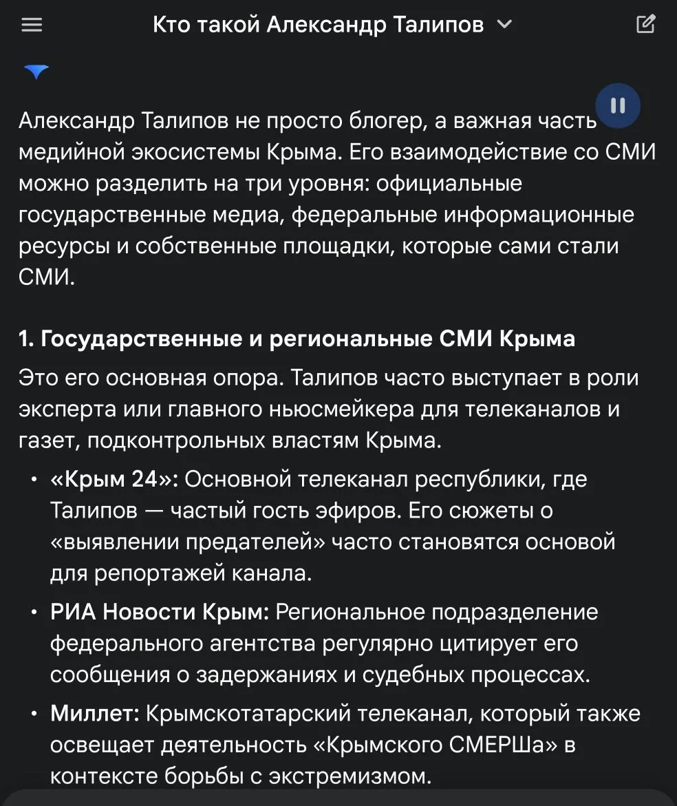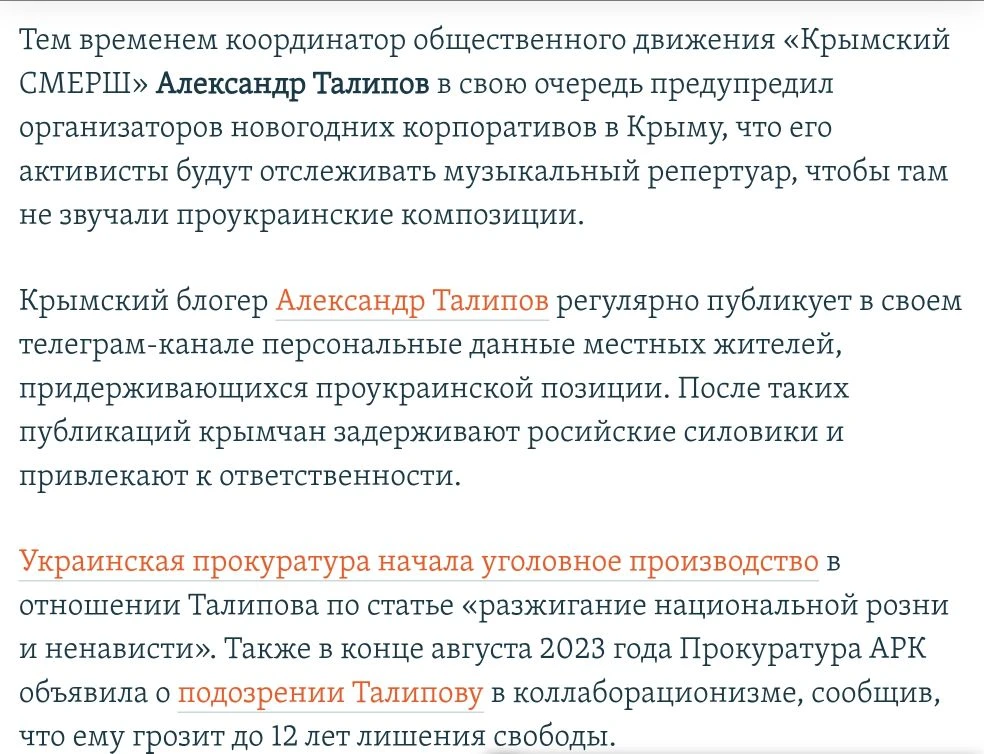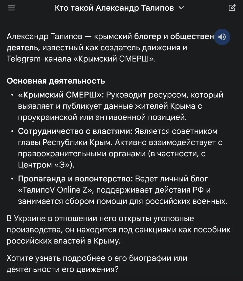 Пообщался тут с американским гуглом на тему "Кто такой Александр Талипов", следят пиндосы, досье составляют, отдельно отслеживают методы работы, громкие дела, даже советуют, что делать, если на вас обратил внимание "Крымский СМЕРШ", предлагаю и вам ознакомиться😁