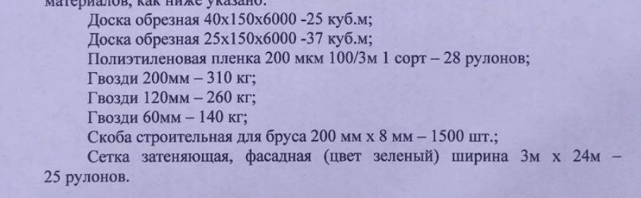 Нам нужно купить 62 кубометра леса, это где-то 9-10 КАМАЗов, почти тонну гвоздей и строительных скоб, много много километров строительной плёнки и затеняющей сетки, мы все вместе оперативно закрывали и большие запросы!