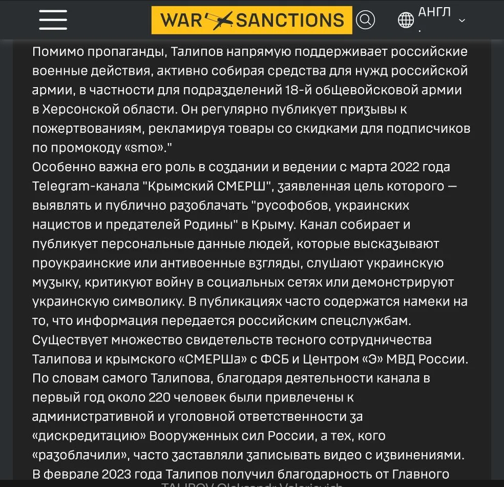 О них в эфире радио "Спутник в Крыму" рассказал лидер общественного движения "Крымский СМЕРШ" Александр Талипов.
