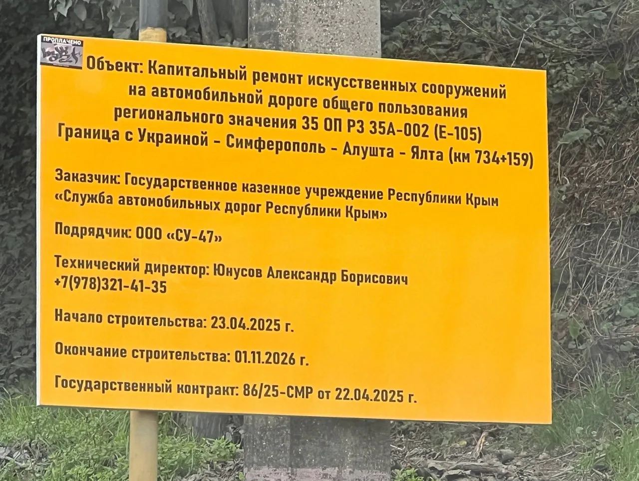 ⚡Ничего необычного, информационный стенд ремонта дороги в районе Ялты.