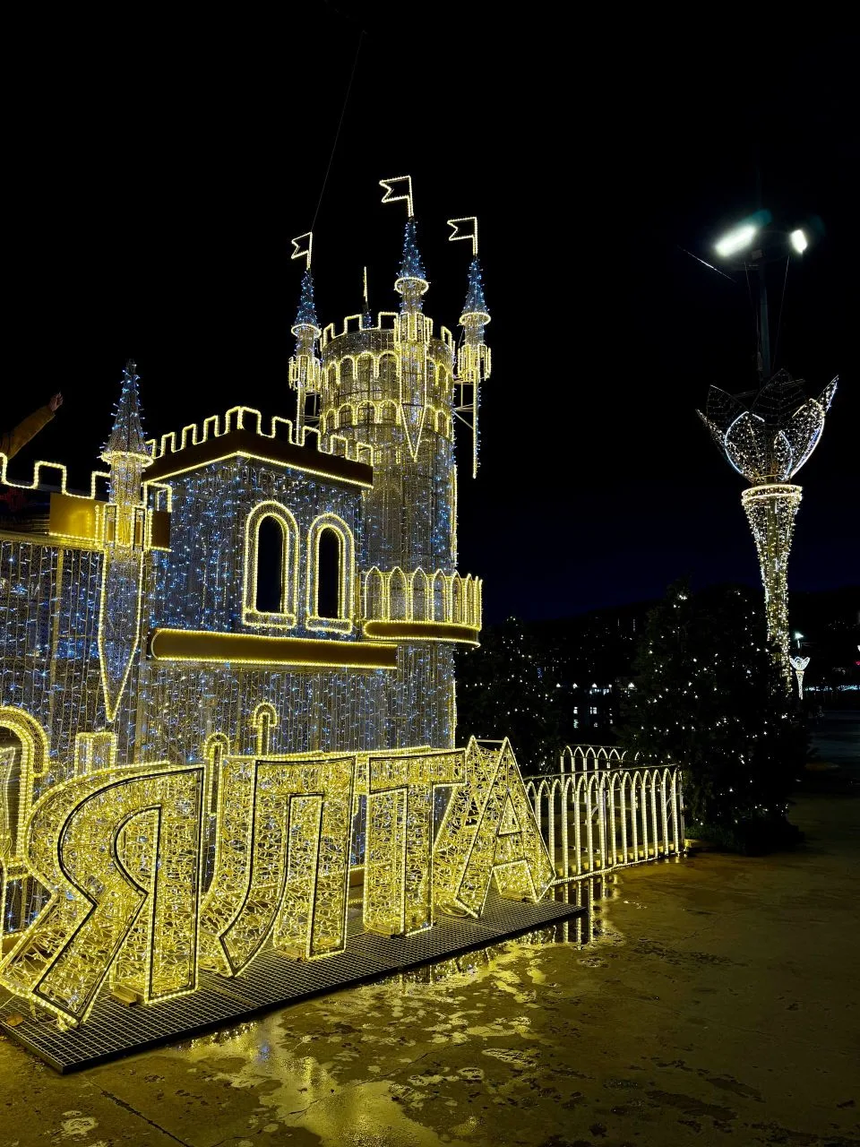 ✨ Для полного ощущения праздника установили 2 сияющих тоннеля, каждый из которых растянулся на 25 м. Территорию озарили и 5-метровые световые деревья, свыше 1000 украшенных туй и световые фонарики.