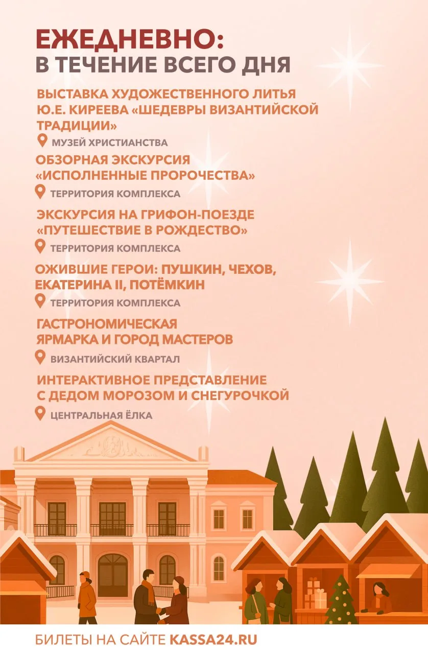 🎄 С 31 декабря по 14 января центром культурной программы в музейно-храмовом комплексе станут рождественские гуляния и спектакли лучших театральных объединений в рамках Большого фестиваля искусств.