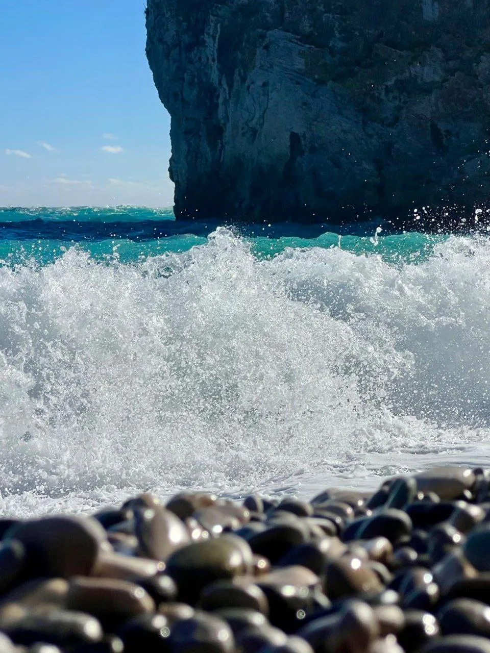 🩵 Обычно здесь вода прозрачная и удивительного изумрудного оттенка. Сегодня этого не наблюдалось: в море небольшое волнение, да и не так давно был дождь.