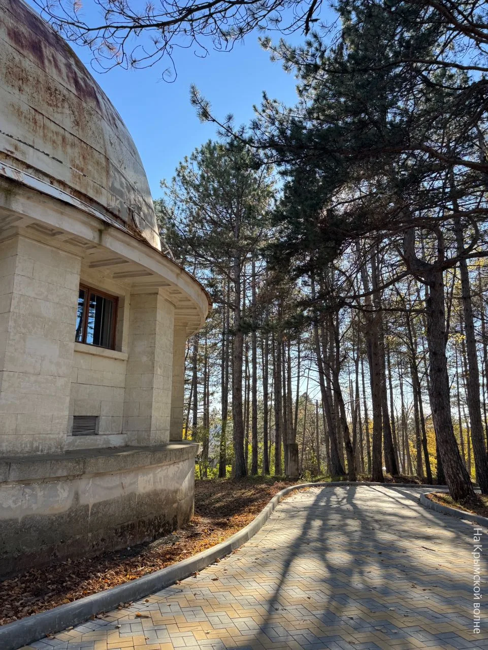 🧡 А вот в будние дни - тишина, нарушаемая только шёпотом ветра в пожухлой листве. Аллеи пустынны, и в этой безлюдности особенно красивы белые купола телескопов.