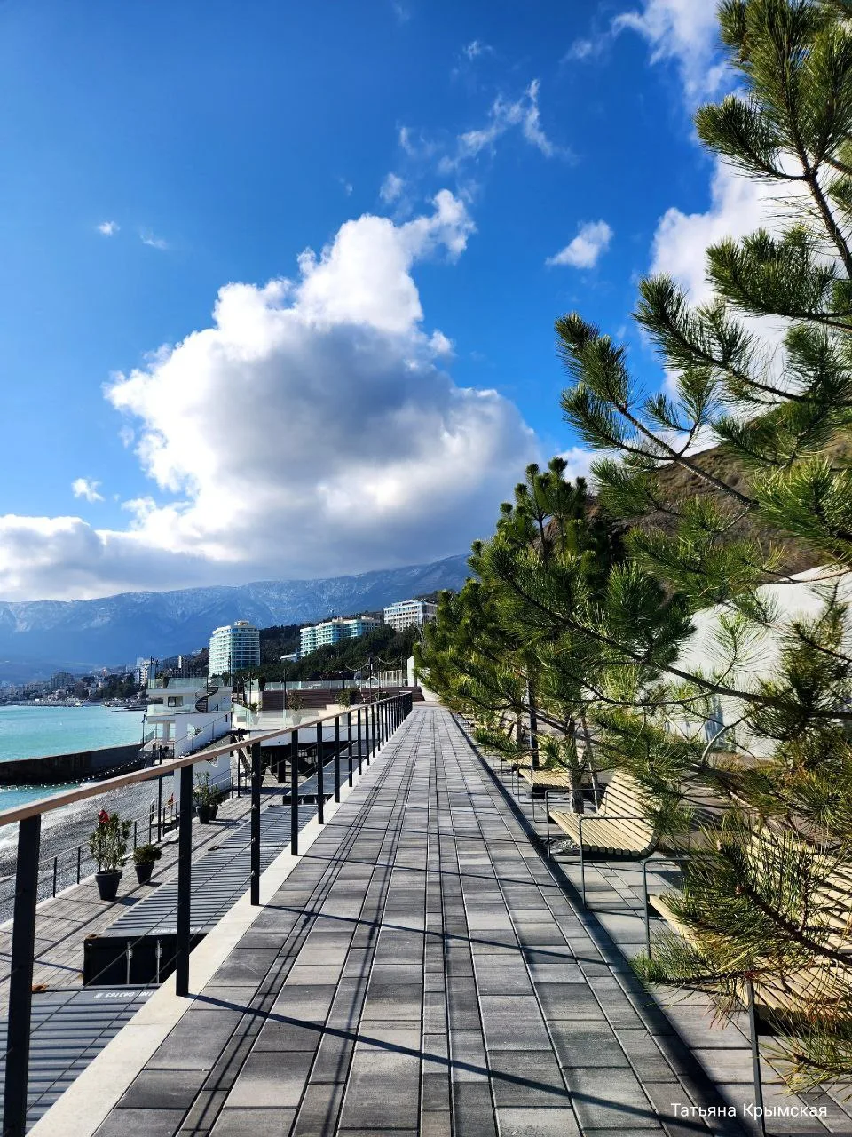 🛳 Безлюдный, просторный, без шезлонгов, он напоминает палубу огромного лайнера. Стоишь у самого края, а перед тобой - бесконечная морская гладь и открыточные виды на Ялту.