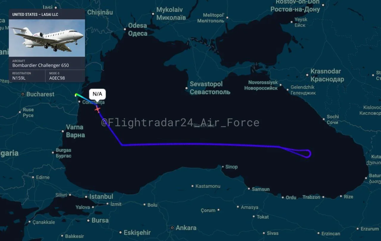 Над Чёрным морем работает: 🇺🇸 Bombardier Challenger 650 Artemis - самолёт разведки и целеуказания.