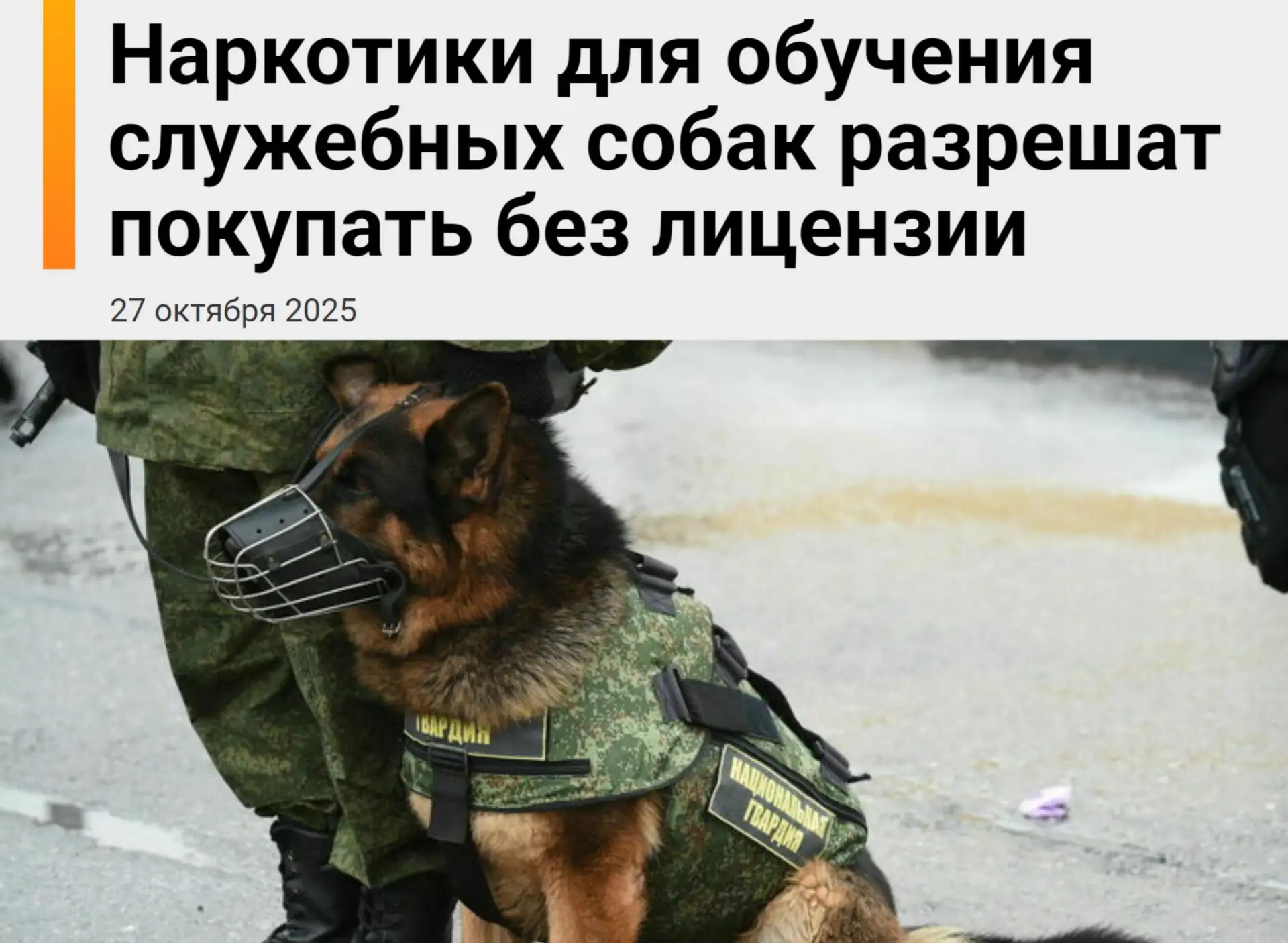 С 1 сентября 2026 года МВД, ФСБ и Федеральная таможенная служба смогут легально покупать, хранить и использовать настоящие наркотики для… дрессировки служебных собак.