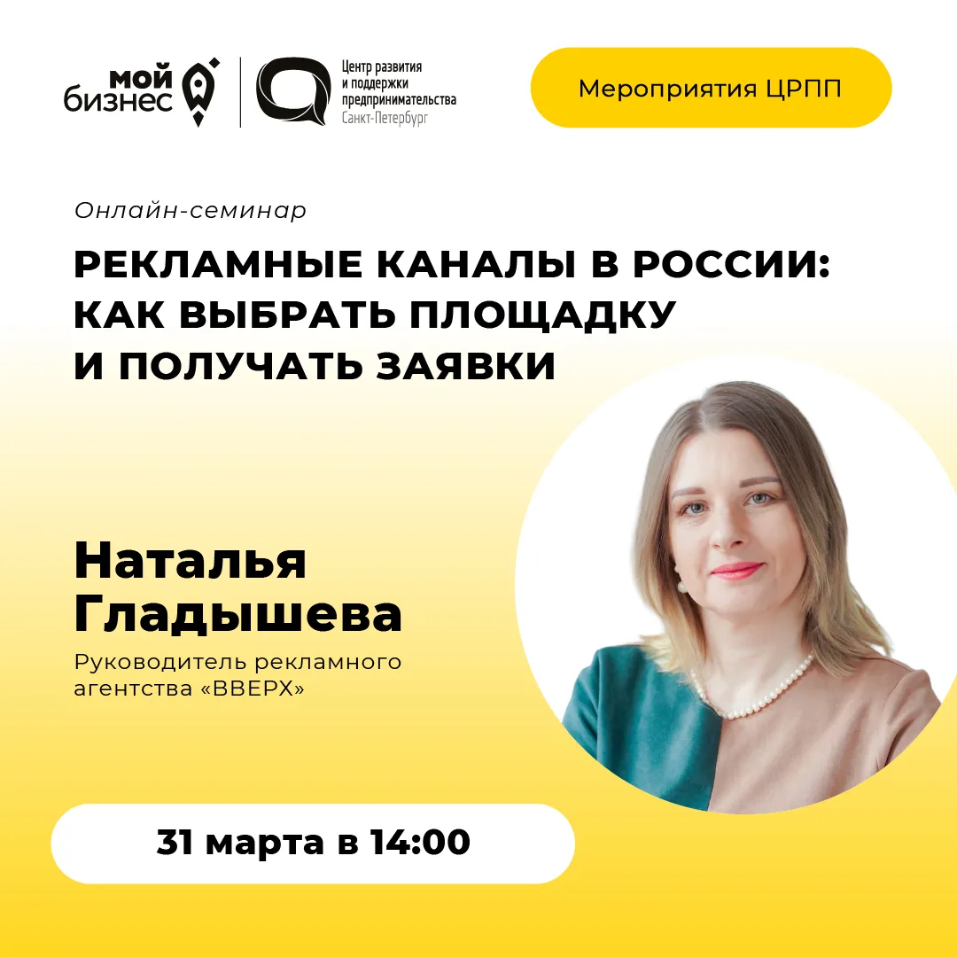 🚀 Центр «Мой бизнес» приглашает на онлайн-семинар «Рекламные каналы в России: как выбрать площадку и получать заявки»
