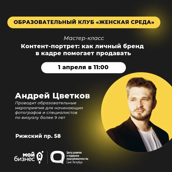 🔸 1 апреля: Мастер-класс «Контент-портрет: как личный бренд в кадре помогает продавать»