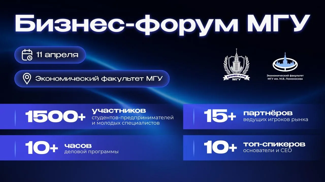 💼 В Москве на Экономическом факультете МГУ имени М. В. Ломоносова состоится Бизнес-форум МГУ – крупнейшее студенческое деловое событие, которое объединит более 1500 участников со всей России.