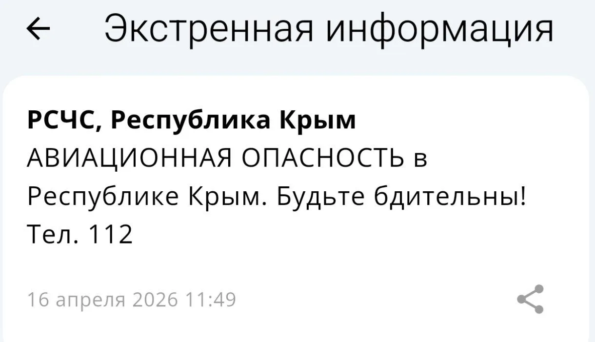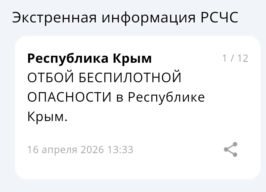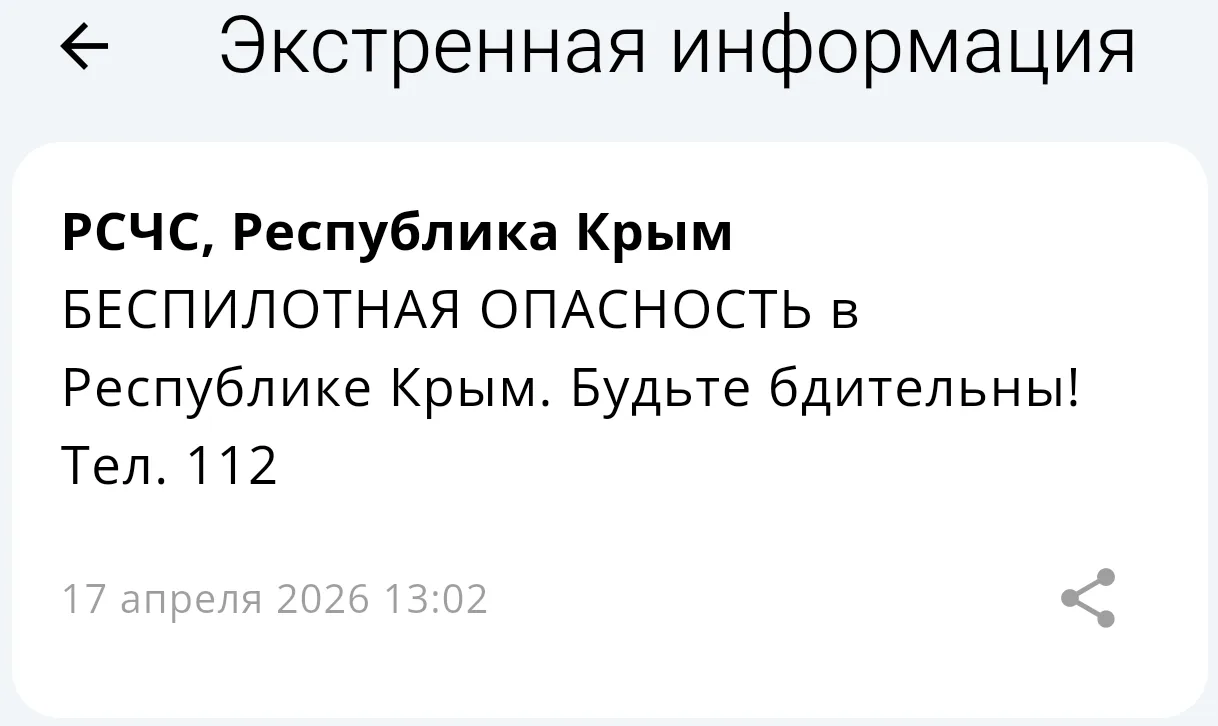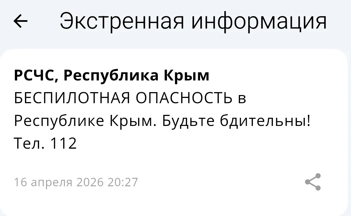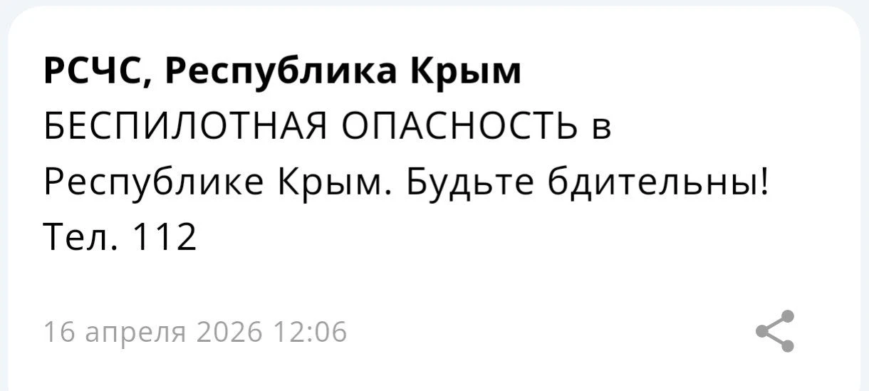 На территории Республики Крым обявлена беспилотная опасность