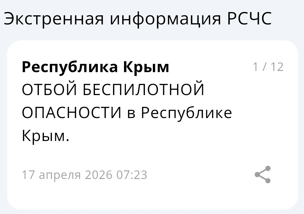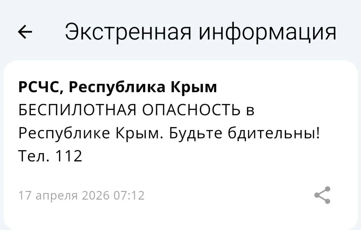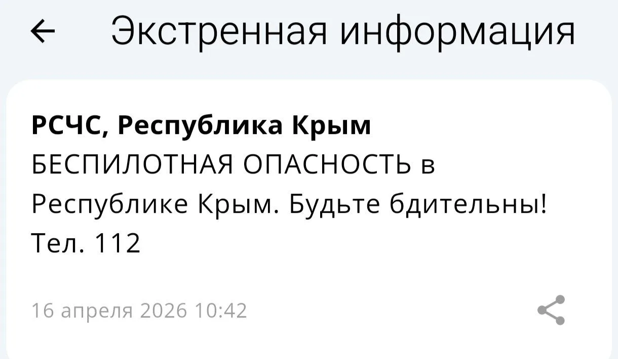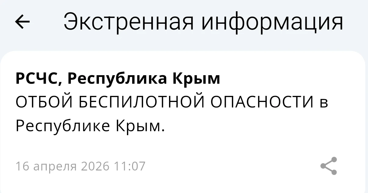 Беспилотная опасность объявлена на территории Республики Крым.