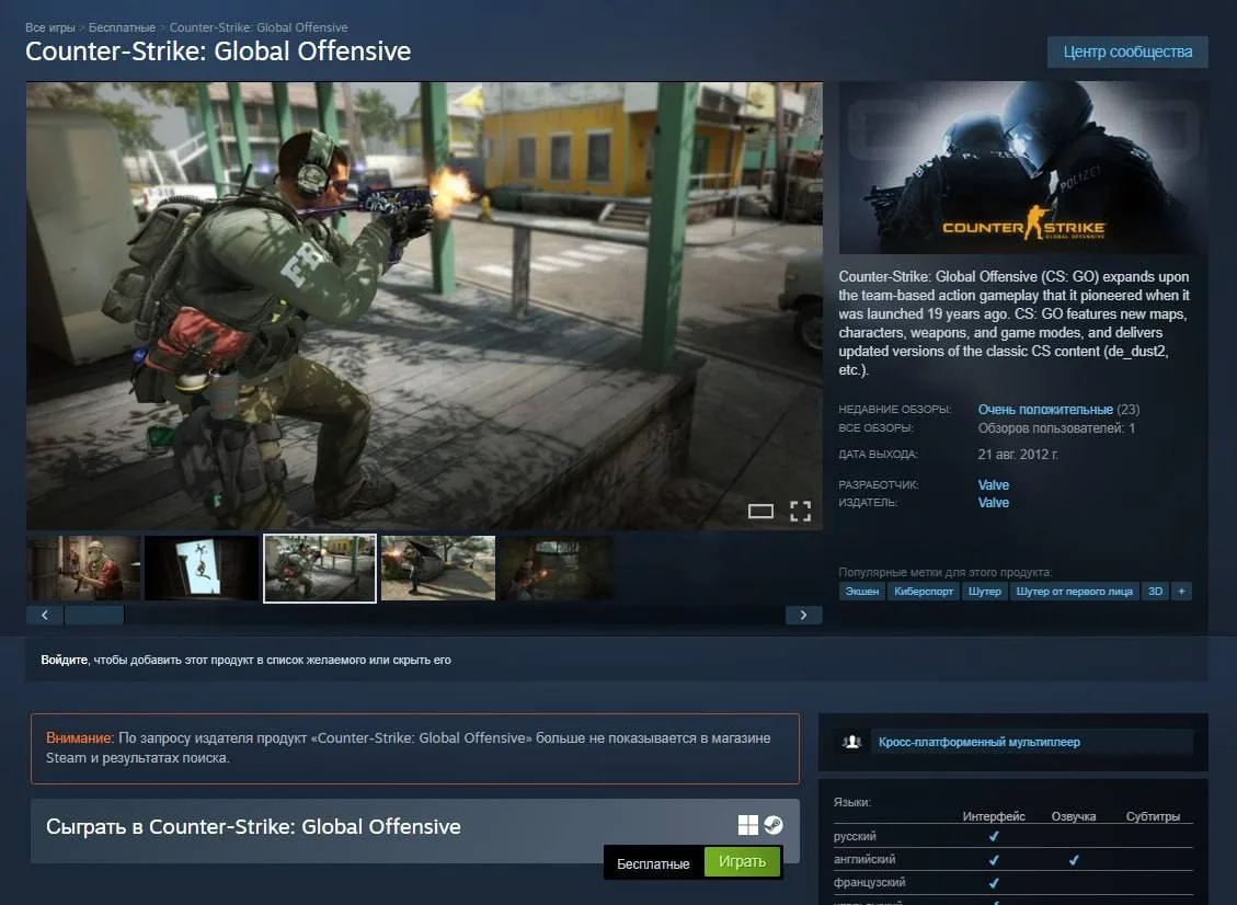 Counter-Strike: Global Offensive вернулась в Steam — игру уже можно скачать.