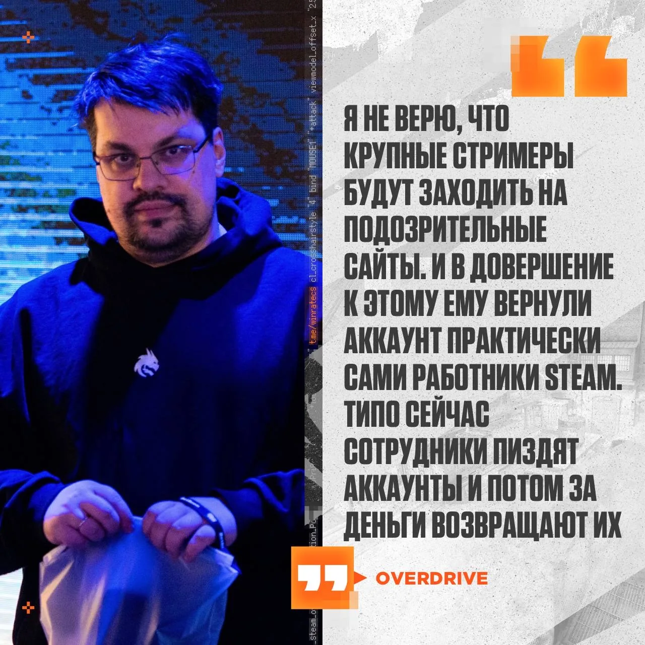 OverDrive заявил, что у коллекционеров фактически нет нормальной защиты. Он считает, что сотрудники 🎮Valve могут спокойно сливать данные аккаунта за деньги.