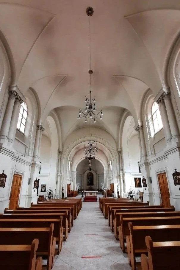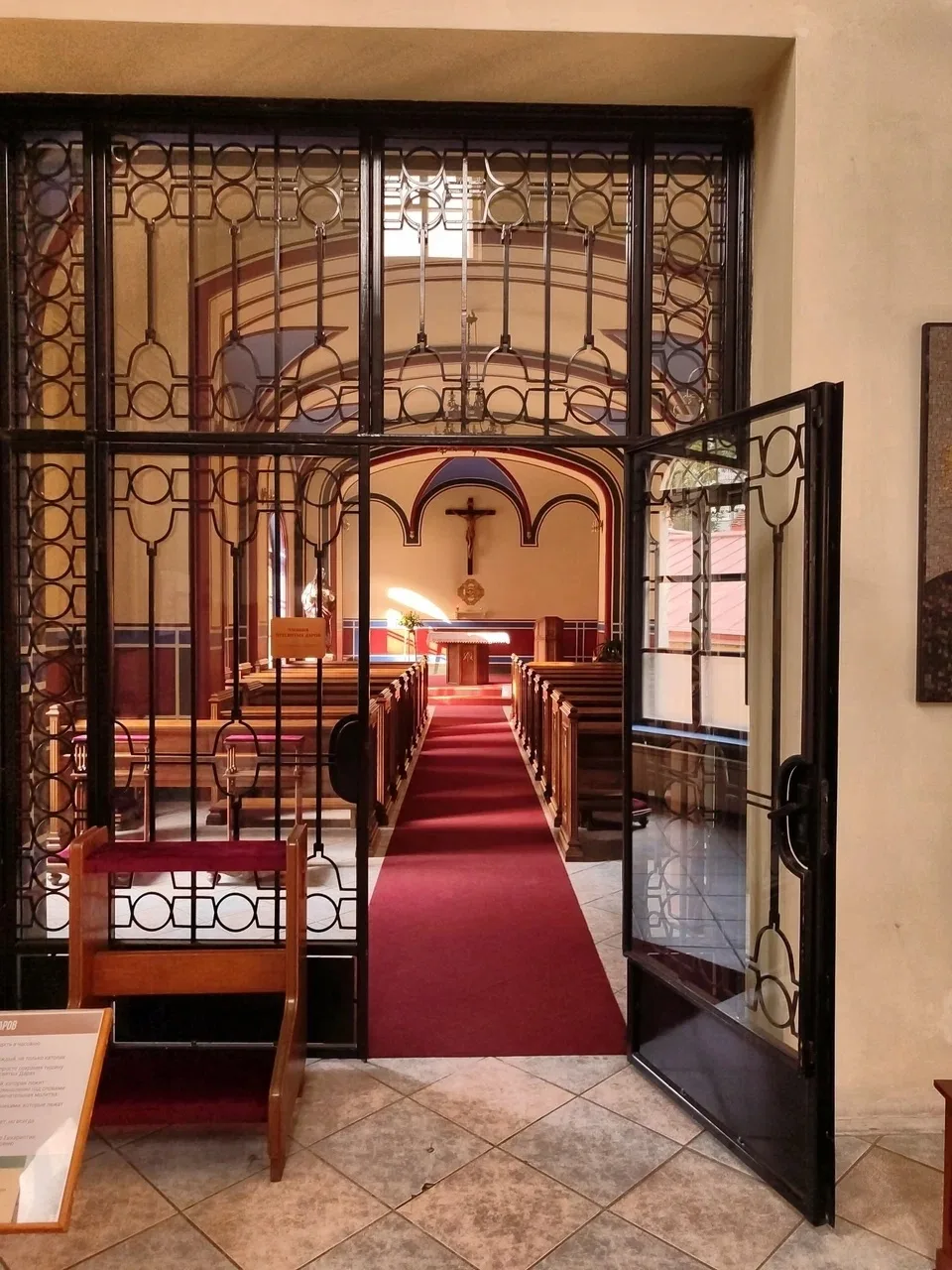 За обыденным фасадом неприметного здания таится удивительное пространство — католический собор. Его главный вход настолько органично вписан в окружающую застройку, что с первого взгляда сложно догадаться о подлинном назначении сооружения.