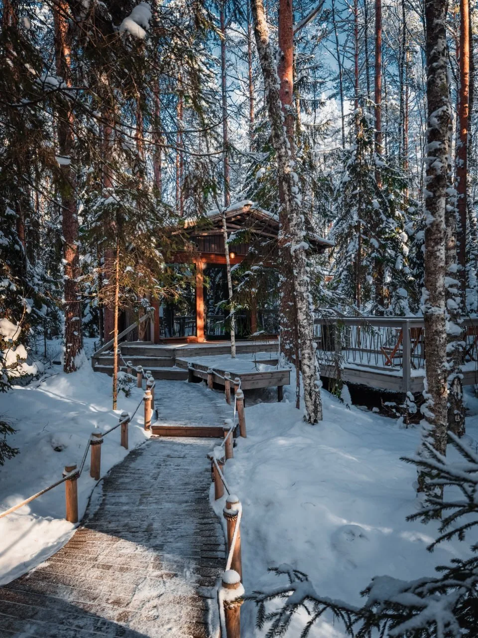 Если душа просит зимней сказки — отправляйтесь в деревню Медный Завод. Здесь снег всё ещё украшает деревья, а солнце осторожно заглядывает сквозь сосновый бор 😍