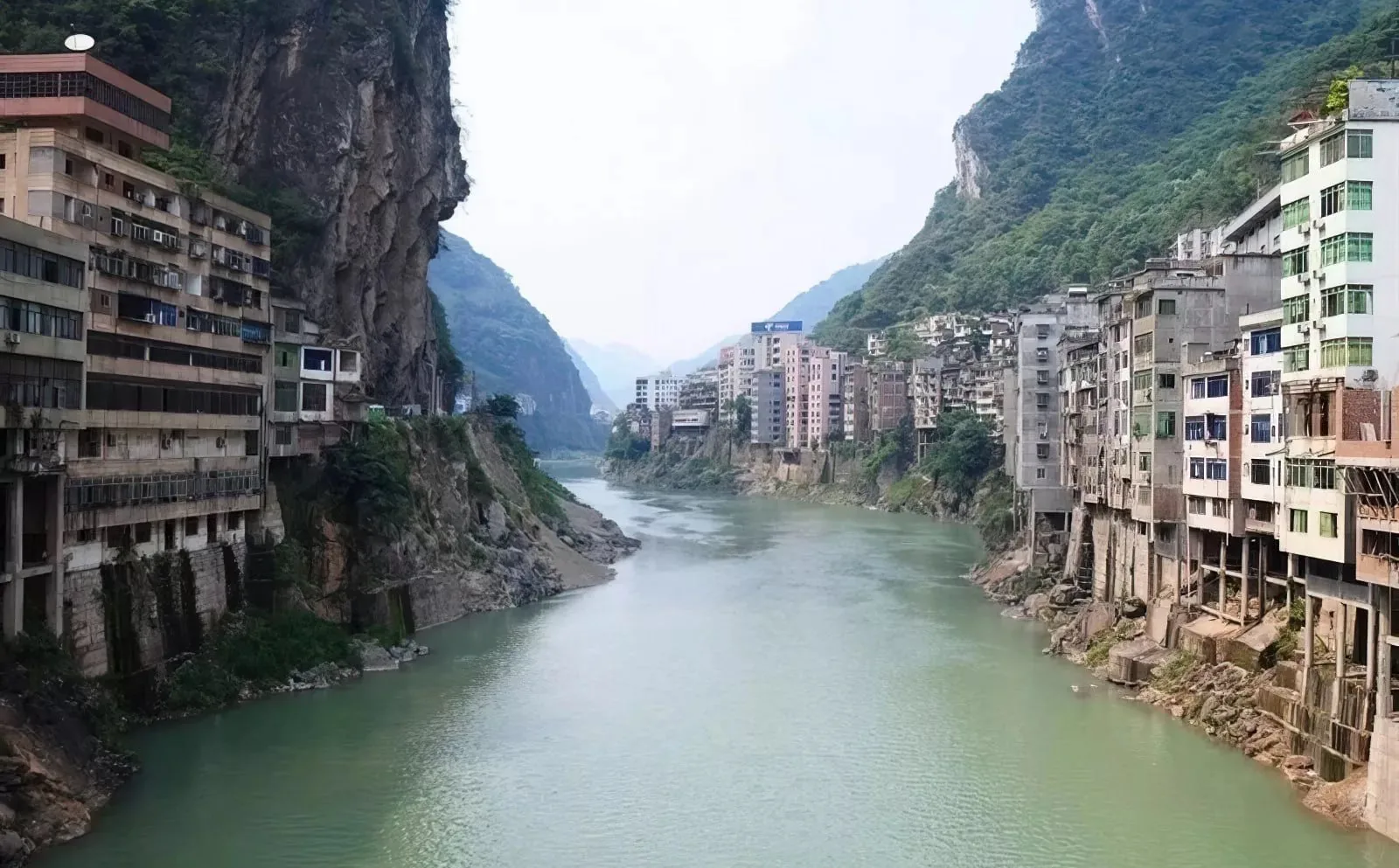 Это — самый узкий город в мире. Китайский Яньцзинь, который построили вдоль горной реки.