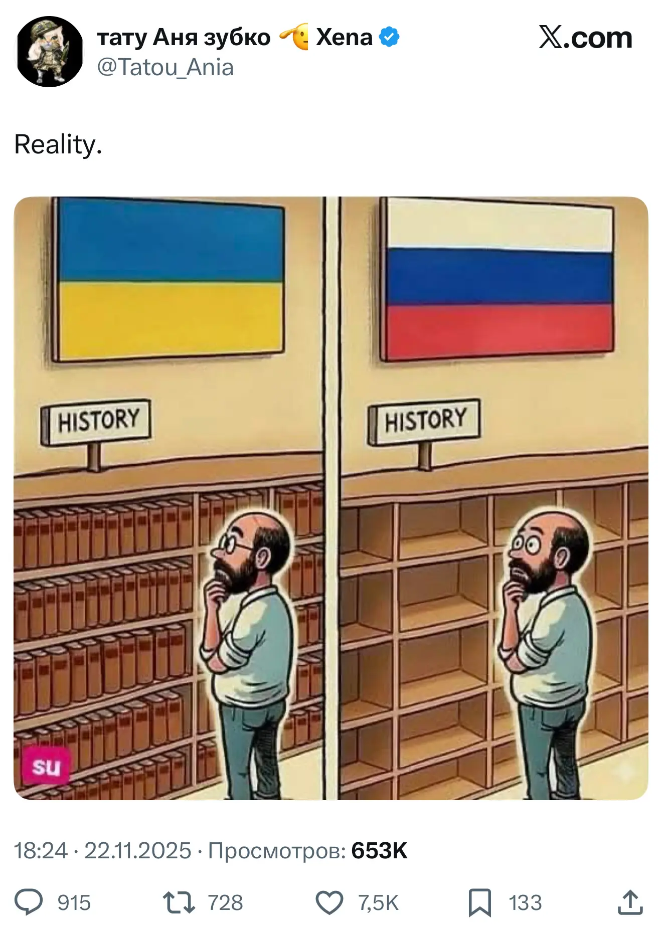 В российской библиотеке забрали все книги читать, а на Украине чел стоит думает; «А что такое книга? из неё можно сделать самые большие во вселенной шаровары из кизяка, или для чего они?»