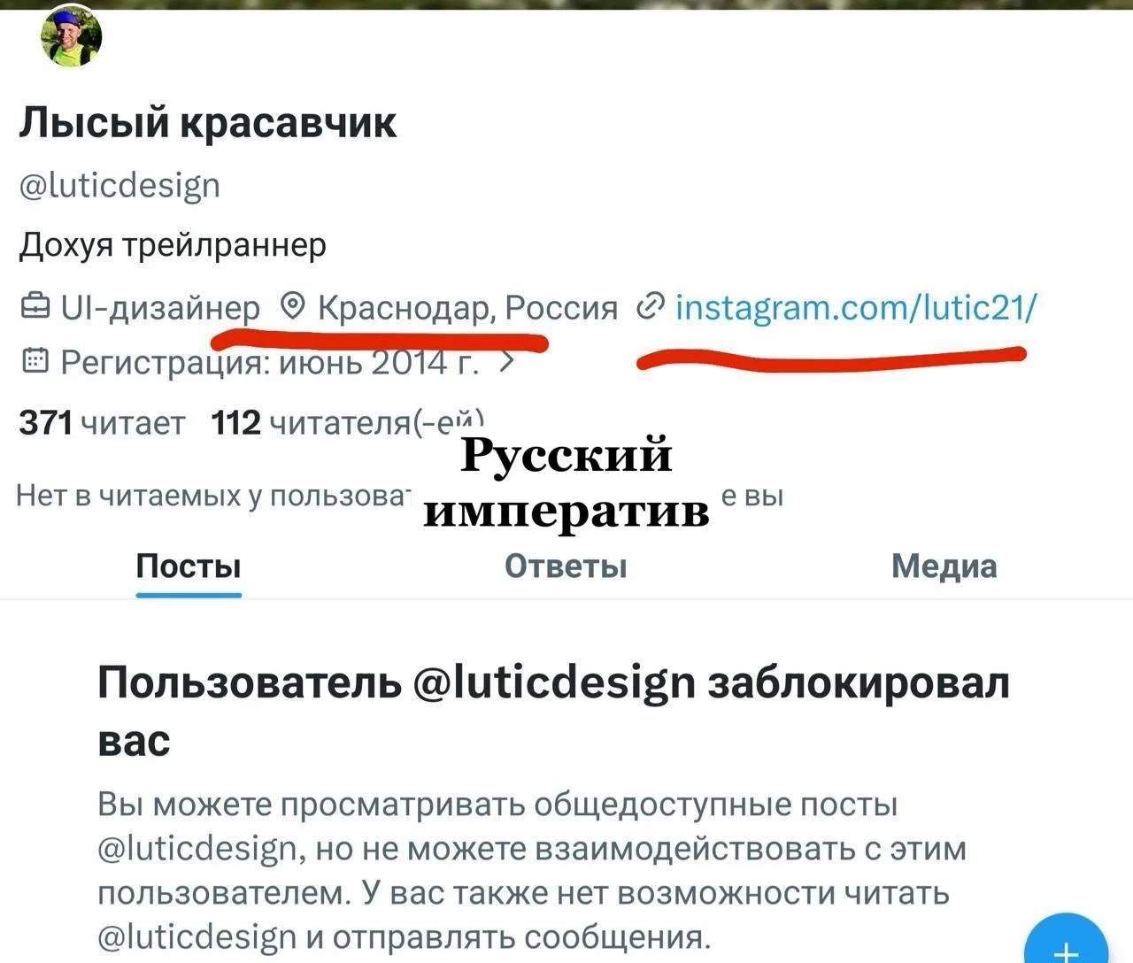 Человек застеснялся, закрылся, но забыл закрыть инстаграм (UPD. только что и его закрыл, так совпало)