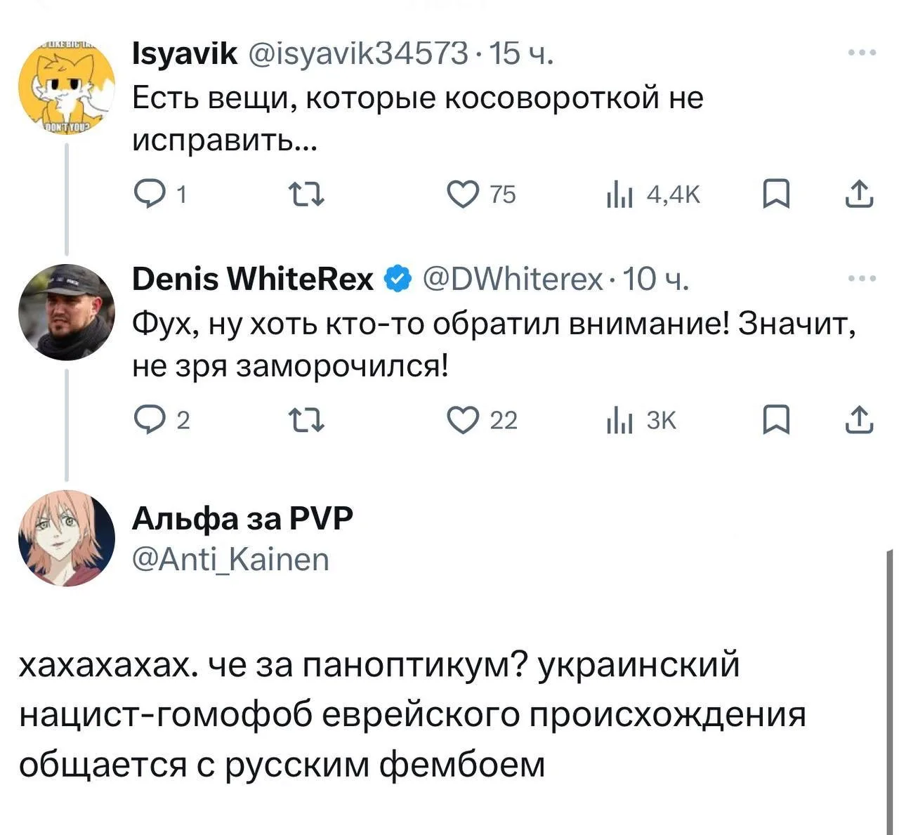 Мне лично нет никакого дела, просто случайно увидел диалог.