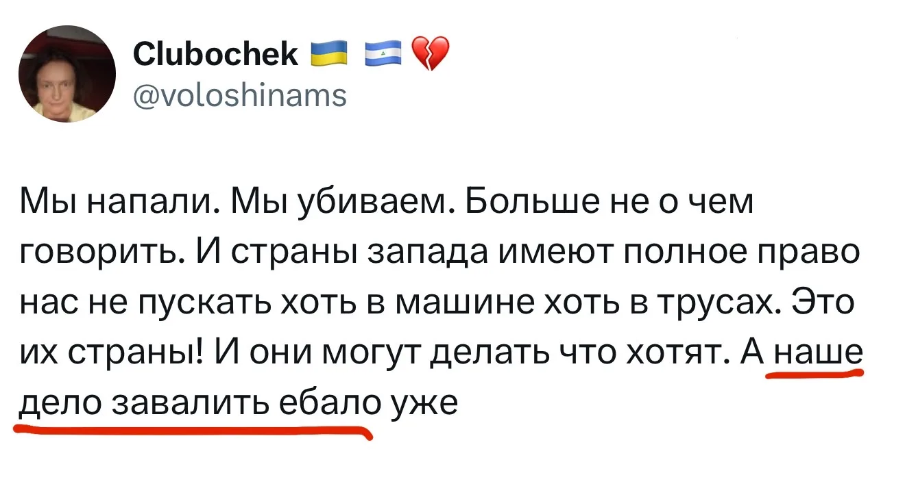 - не обмотается в украинский флаг с ног до головы.