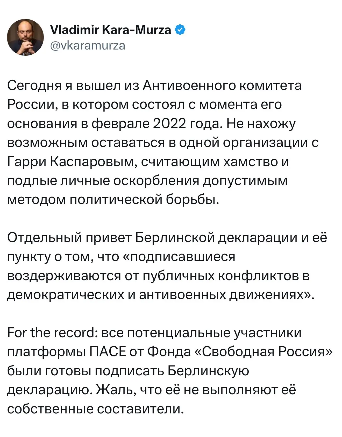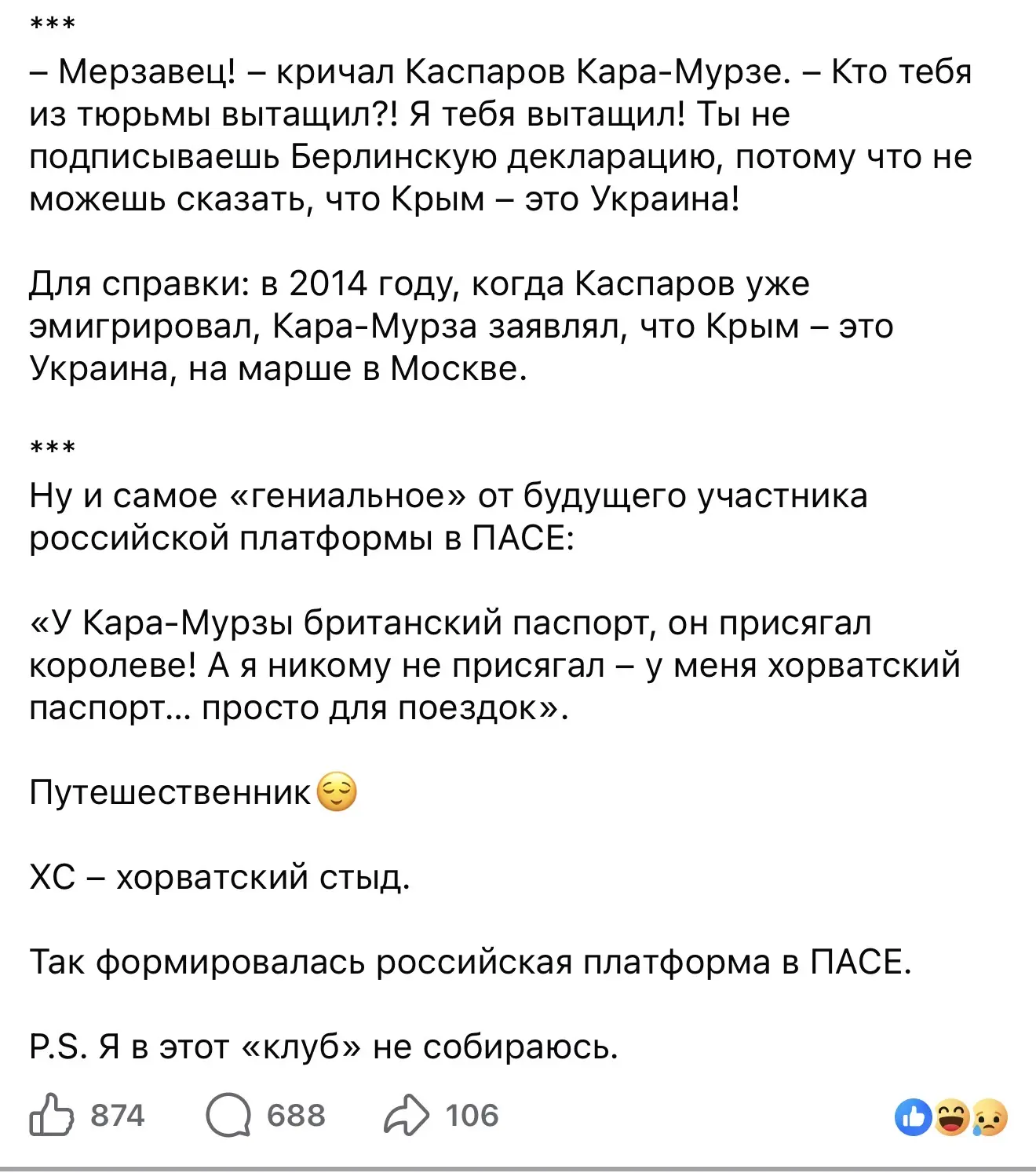 ПАСЕ - сейчас единственная такая возможность, потому что Россия вышла оттуда в 2022-м, и в 2026-м году все эти Шариковы будут там заседать в качестве наблюдателей, греть стулья пока взрослые не помирятся и не вернутся обратно.