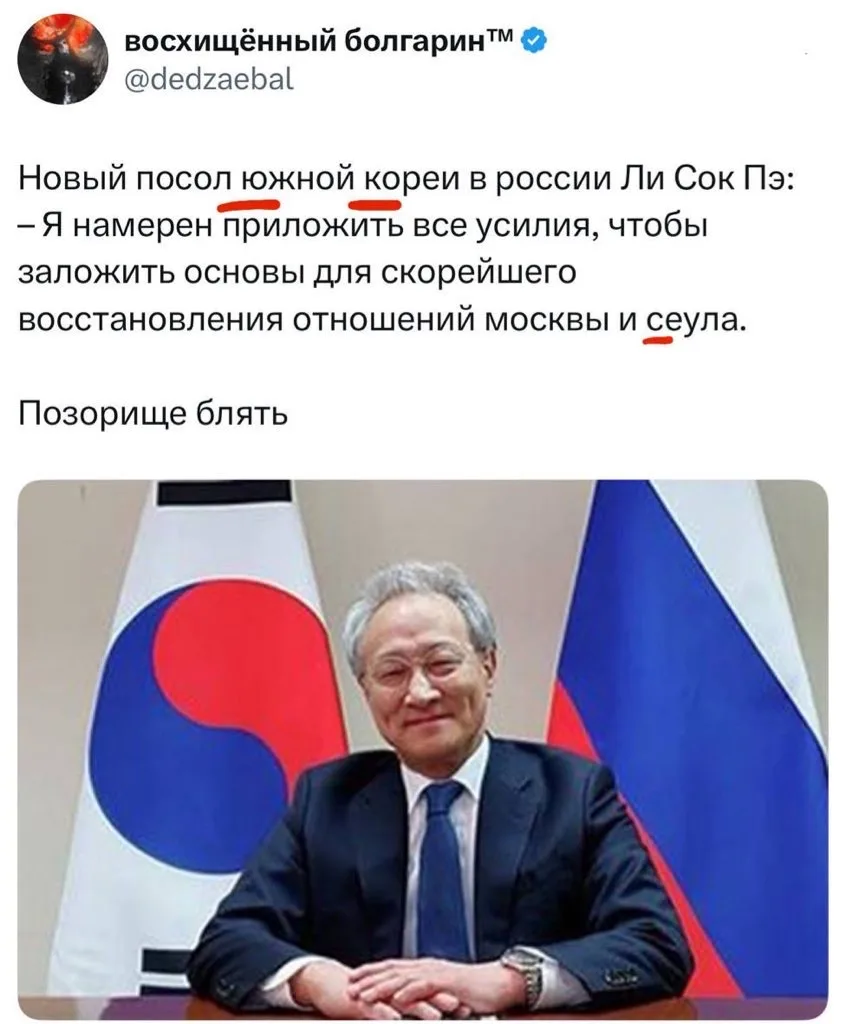 Наш ультиматум: до тех пор пока посол Южной Кореи не проявит к нам полную лояльность в стиле жмеринской дипломатии: