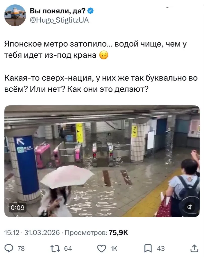 Посмотрите как красиво затапливает метро в Японии, сразу видно, что это - прогрессивная и продвинутая страна!