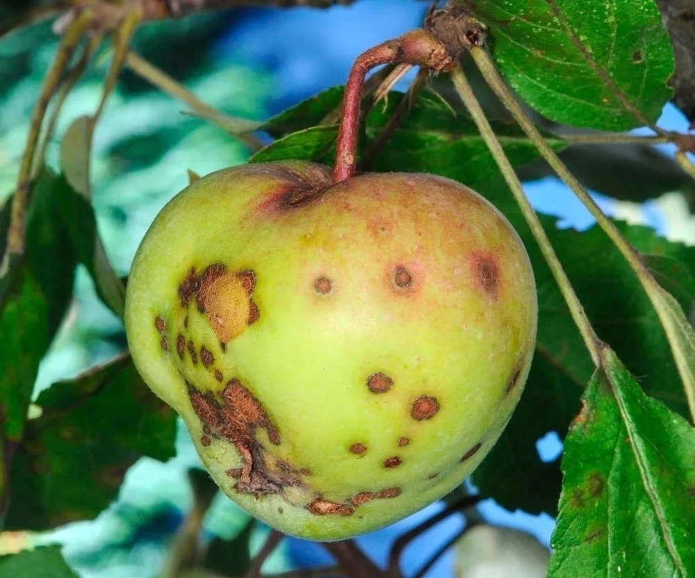 В целях профилактики, чтобы уничтожить зимующие споры парши, нужно проводить неглубокую перекопку приствольной зоны. Также можно обработать дерево дезинфицирующим средством на основе мочевины (600 граммов на ведро воды).