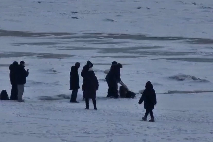 Приморские рыбаки вновь проверяют лёд на прочность. Несмотря на предупреждения МЧС, мужчины решили, что улов важнее табличек.