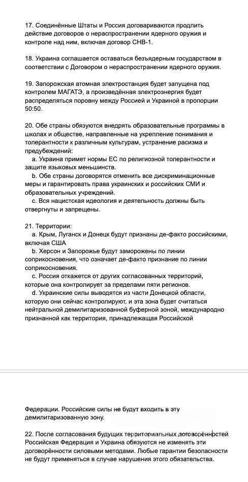 Стали известны все 28 пунктов мирного плана США