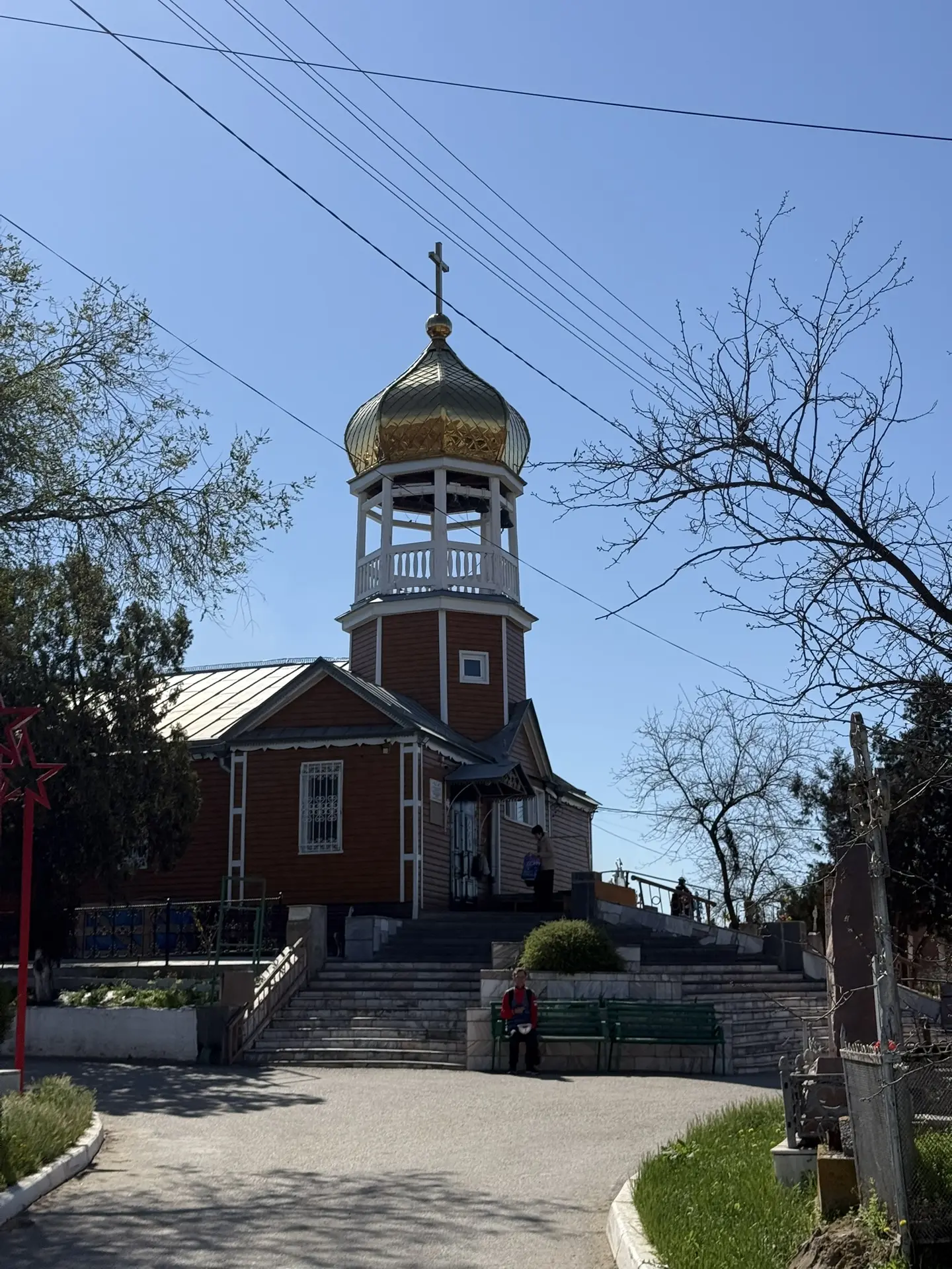 Как я иду к дому своей прабабушки Гали. Это мама нашей бабушки Жанны. Она умерла ещё в 2000 году. И мне почему-то много раз снился сон, как я вот с этого переулка иду к её дому. Ищу его. Ориентируюсь на храм.